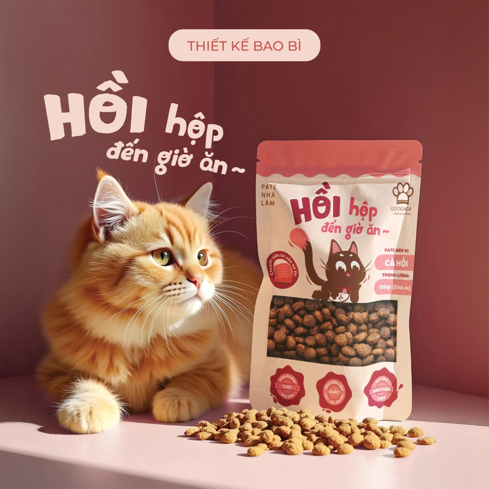 Thiết kế bao bì pate nhà làm GOOGAGA là một trong những dự án nổi bật của Bee Art trong mảng sản phẩm thú cưng. Với mục tiêu tạo nên bao bì vừa thu hút, vừa truyền tải đúng tinh thần thương hiệu, Bee Art lựa chọn phong cách minh họa sinh động, thân thiện và dễ gây thiện cảm ngay từ ánh nhìn đầu tiên.