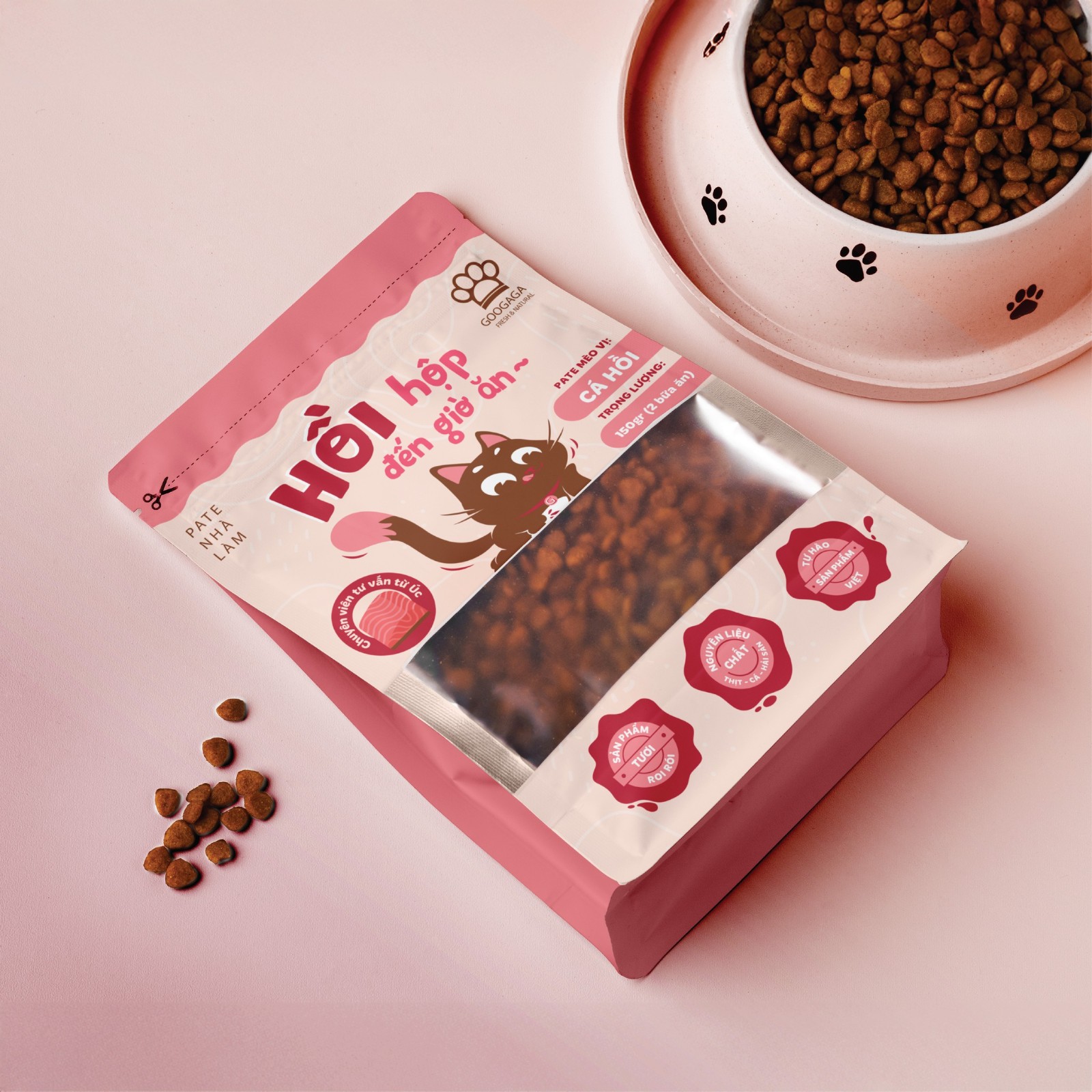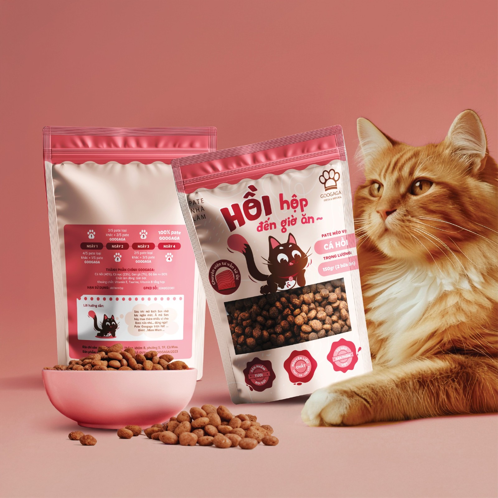 Bề mặt bao bì được xử lý theo tiêu chuẩn chống ẩm giữ mùi, phù hợp với đặc tính sản phẩm thức ăn cho mèo. Sự kết hợp giữa hình ảnh đáng yêu, màu sắc hài hòa và tính năng bảo quản tốt đã giúp thiết kế nổi bật không chỉ ở tính thẩm mỹ mà còn ở tính ứng dụng.