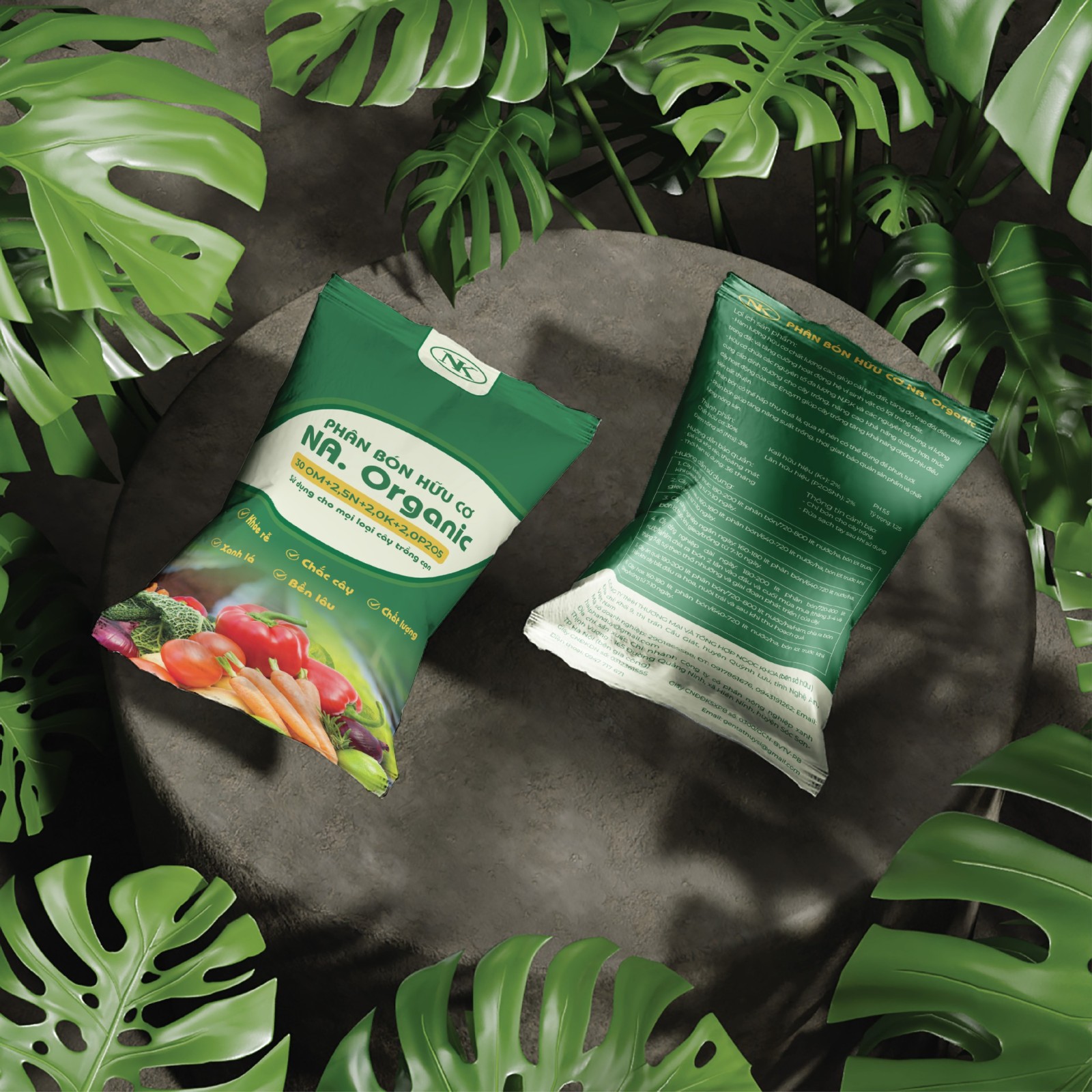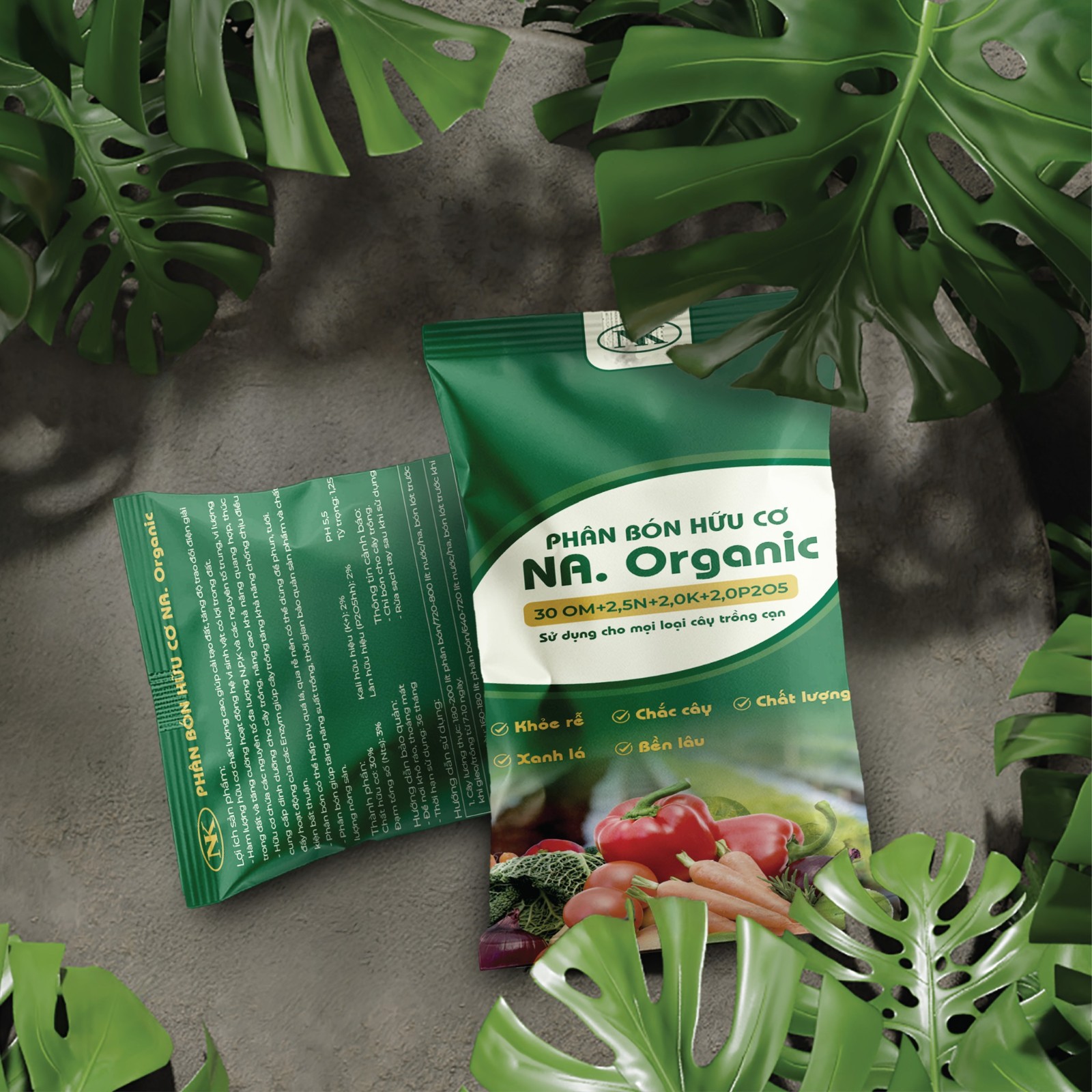 Phân bón hữu cơ NA. Organic là dòng sản phẩm hướng đến đối tượng khách hàng tin vào nông nghiệp bền vững, và Bee Art đã xây dựng thiết kế bao bì dựa trên chính tinh thần ấy: trực quan, sạch, dễ nhận diện và mang thông điệp xanh ngay từ ánh nhìn đầu tiên.