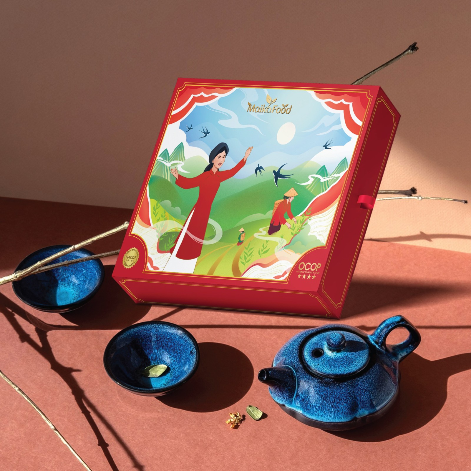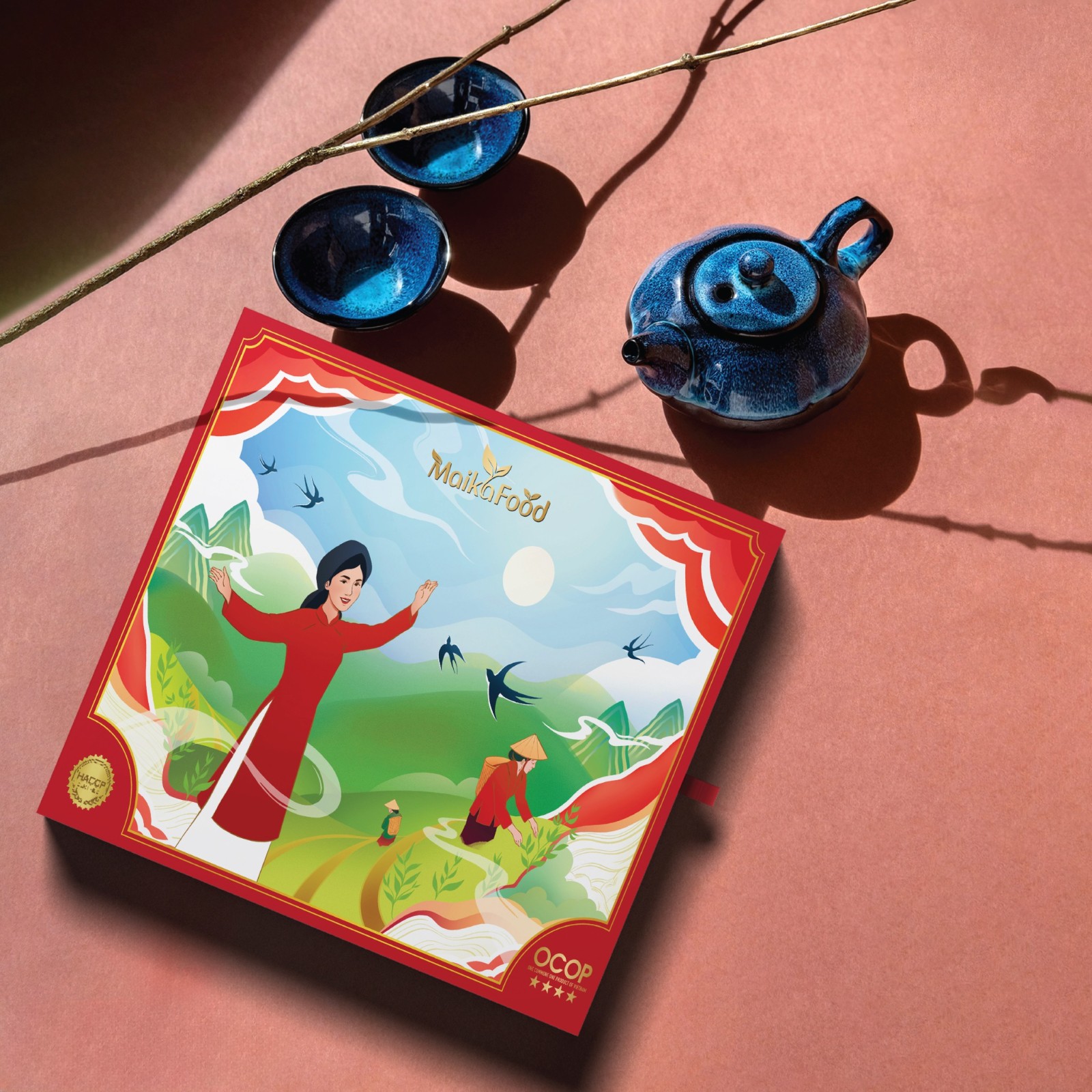 Từ tinh thần ấy, Bee Art đã lựa chọn cách kể câu chuyện văn hoá Việt thông qua thiết kế bao bì cho dòng trà cao cấp MaikaFood với mỗi chi tiết đều gợi nhắc đến vẻ đẹp truyền thống và nguồn gốc thiên nhiên của sản phẩm.