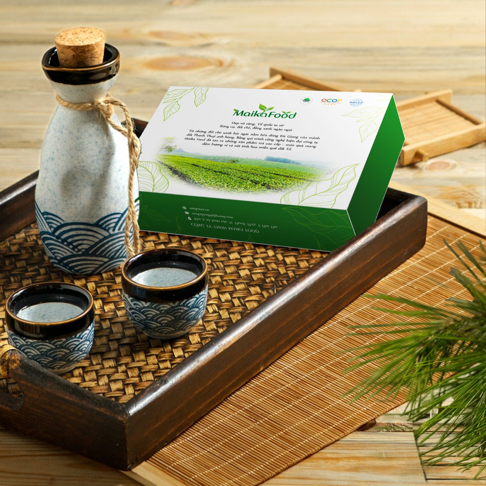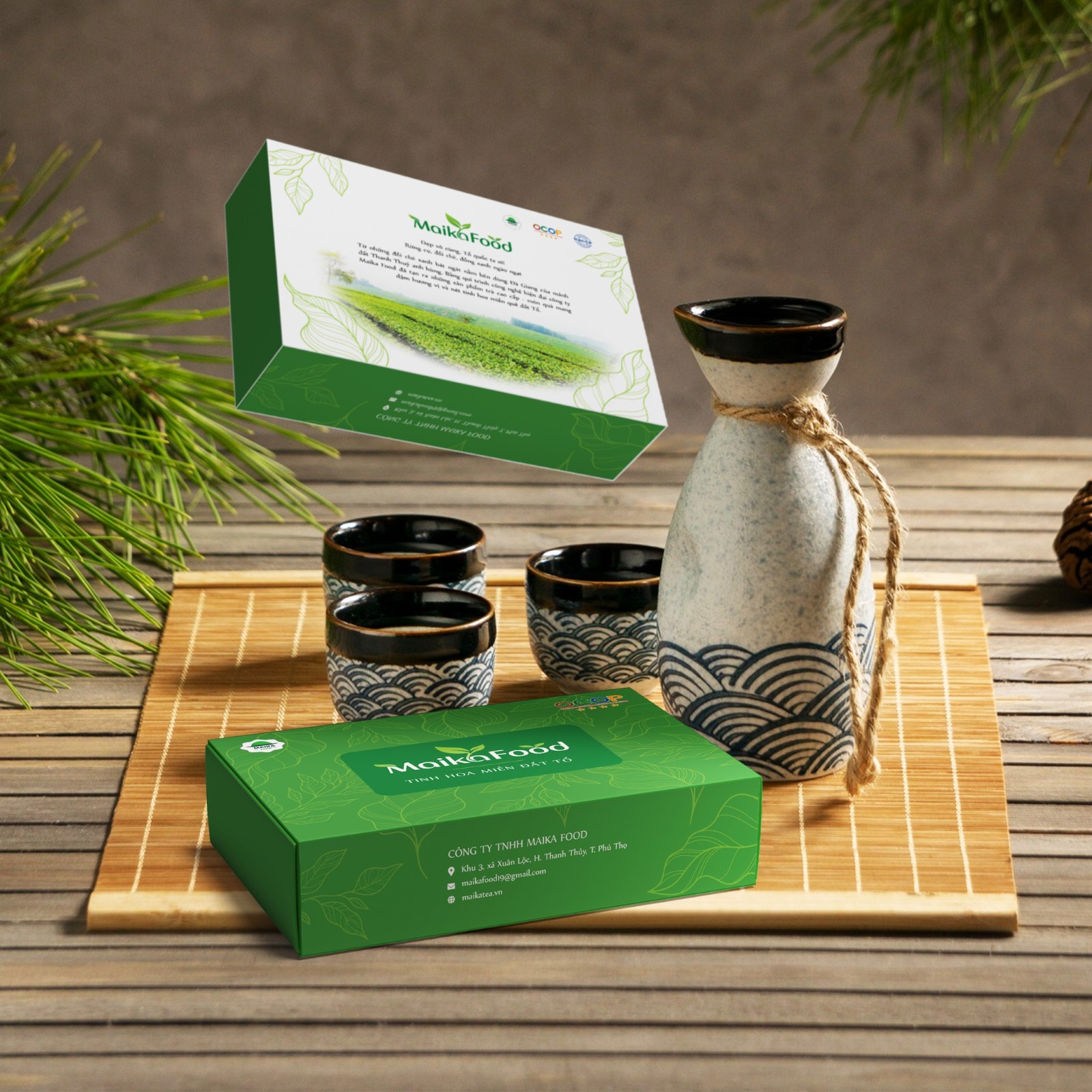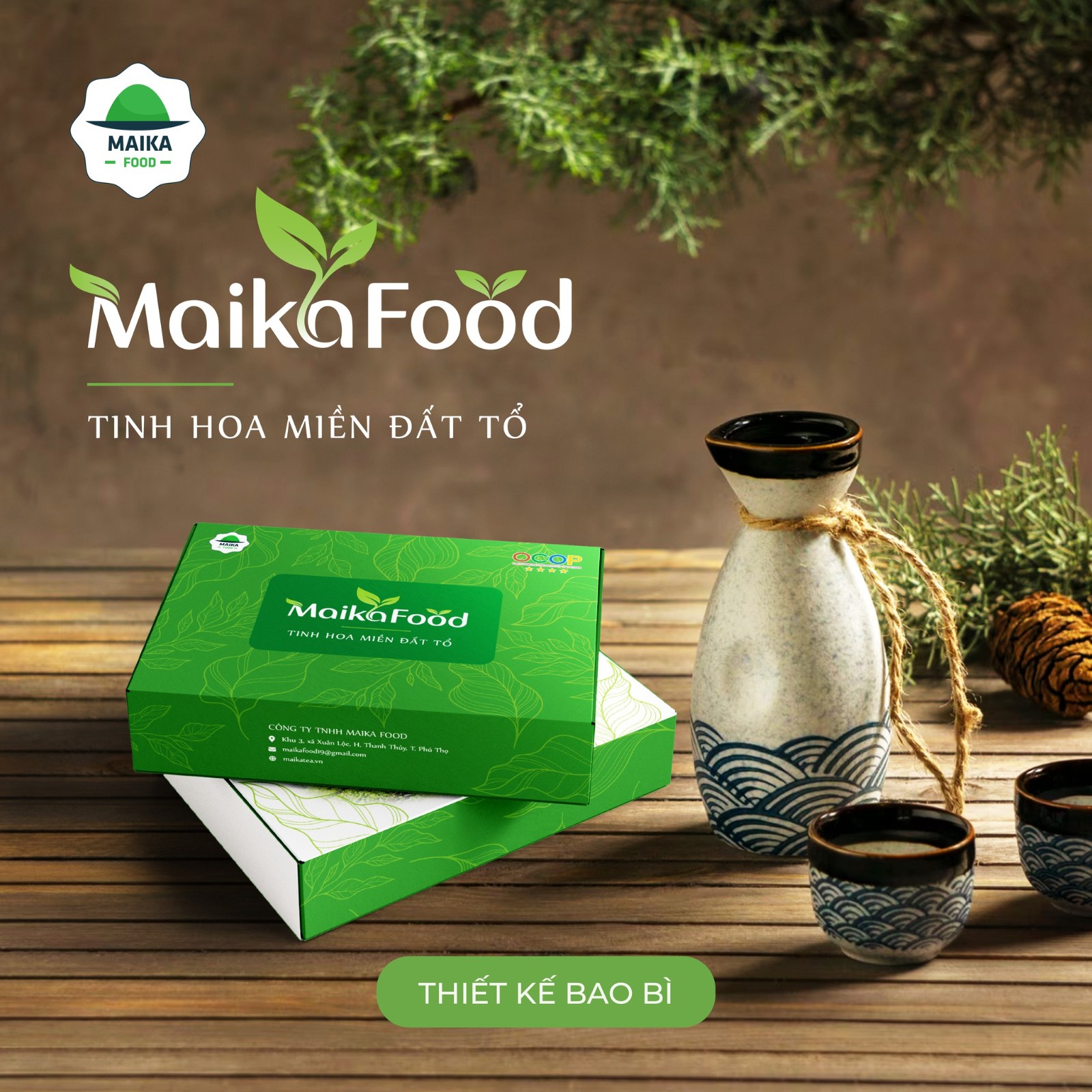 Bố cục bao bì được Bee Art xây dựng theo hướng gọn gàng, rõ ràng, dễ nhận diện. Logo Maika Food được đặt ở vị trí trung tâm, kết hợp slogan “Tinh hoa miền đất Tổ” như một lời cam kết về chất lượng và nguồn gốc sản phẩm. Hệ thống thông tin được sắp xếp khoa học, đảm bảo tính thẩm mỹ đồng thời thuận tiện cho người tiêu dùng khi tiếp cận.