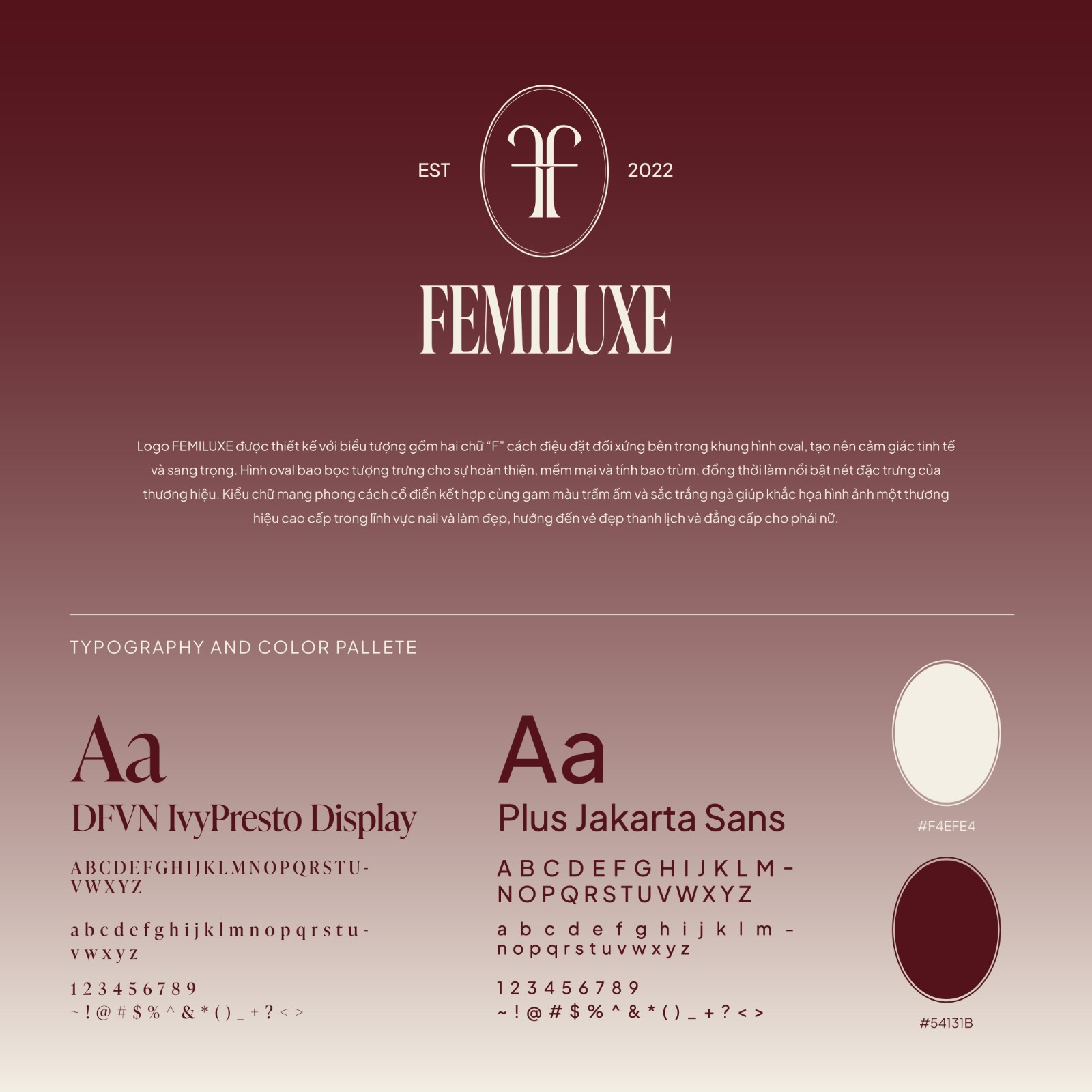 Kiểu chữ serif cao cấp kết hợp với font sans mảnh nhẹ tạo nên sự đối lập hài hòa, như chính tinh thần của Femiluxe: tinh tế nhưng có sức hút, nhẹ nhàng nhưng không mờ nhạt.