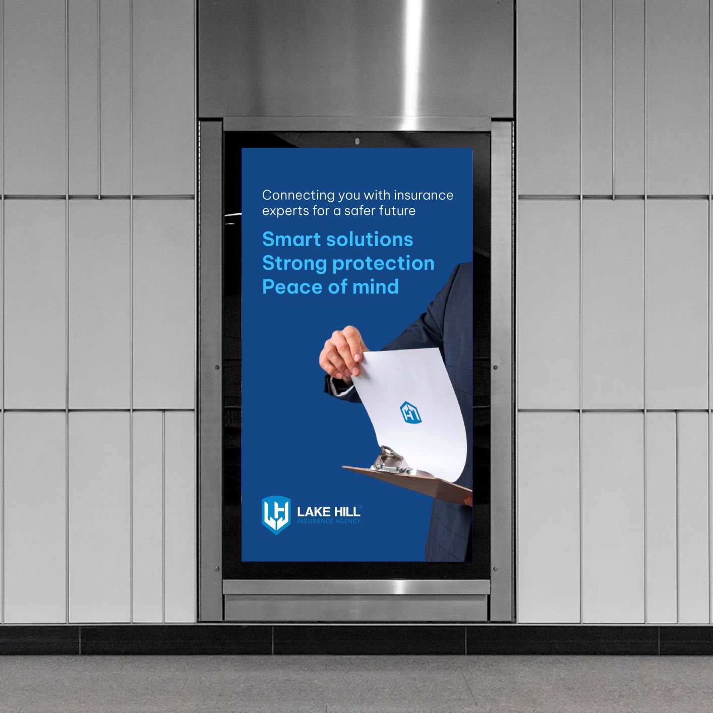 Bee Art thiết kế logo Lake Hill Insurance Agency với định hướng hiện đại và chuyên nghiệp, tập trung vào sự rõ ràng và chắc chắn trong từng đường nét. Biểu tượng được xây dựng từ những hình khối cân đối, gợi liên tưởng đến sự bảo vệ, ổn định và bền vững, những giá trị cốt lõi của ngành bảo hiểm xe. Tổng thể logo mang cảm giác vững vàng nhưng không nặng nề, tạo niềm tin ngay từ cái nhìn đầu tiên.