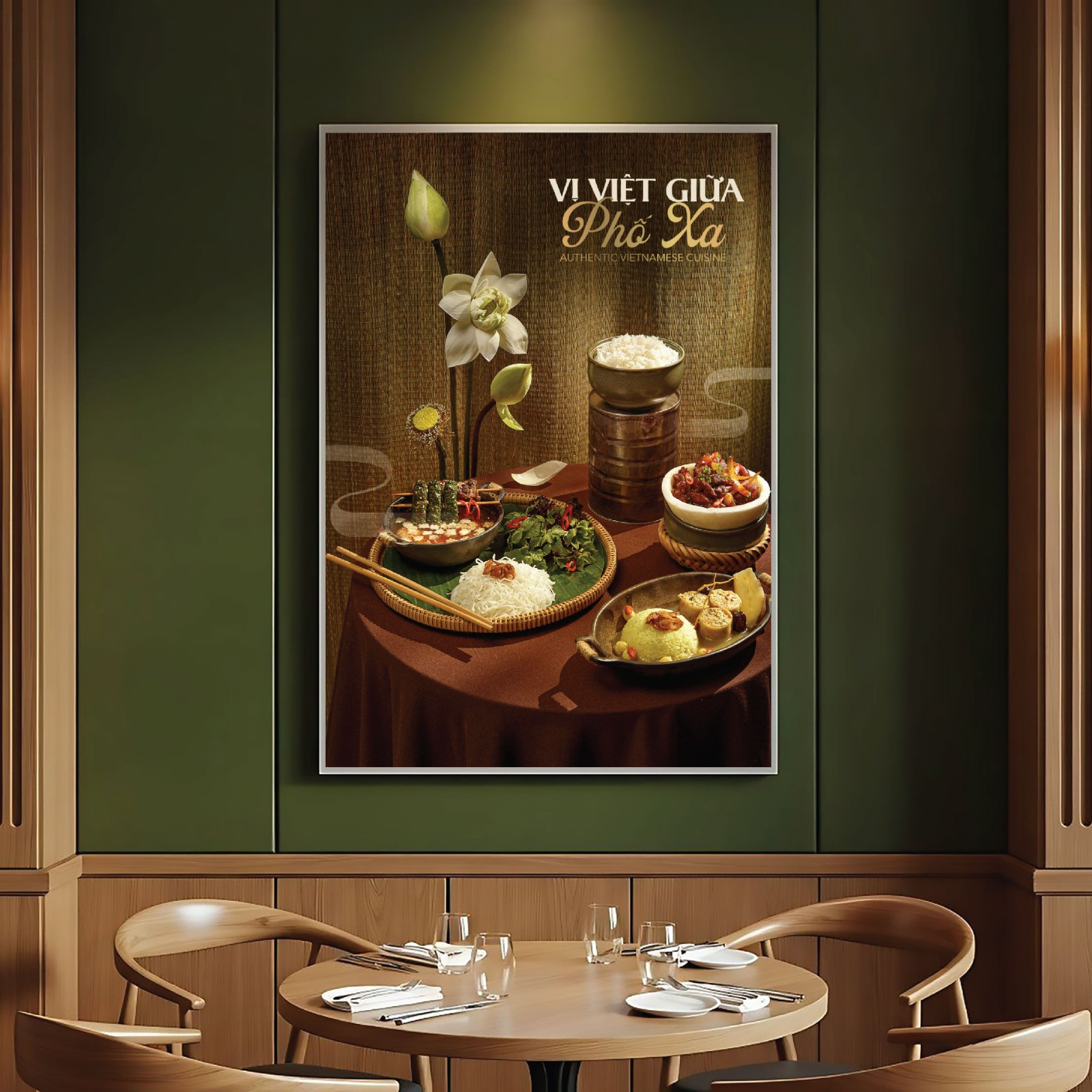 Tinh thần “đi xa để trở về” cũng được phản ánh trong cách logo kể câu chuyện ẩm thực Việt. Đó không phải là sự tái hiện rực rỡ của món ăn đường phố, mà là cảm giác thân thuộc của bữa cơm nhà được nâng niu và gìn giữ: Dù đi bao xa, hương vị quen thuộc vẫn luôn chờ đợi ở một nơi mang tên Phố Xa.