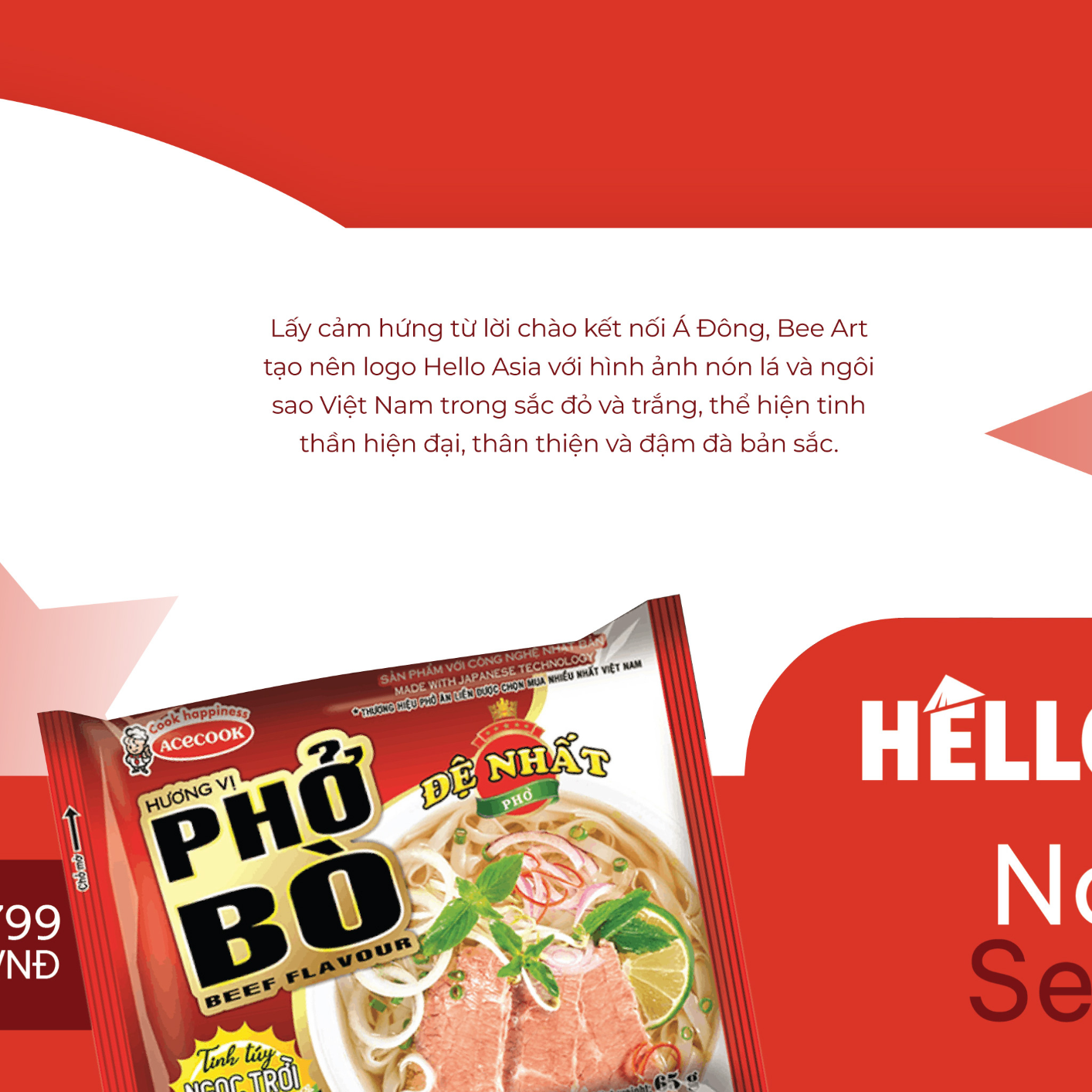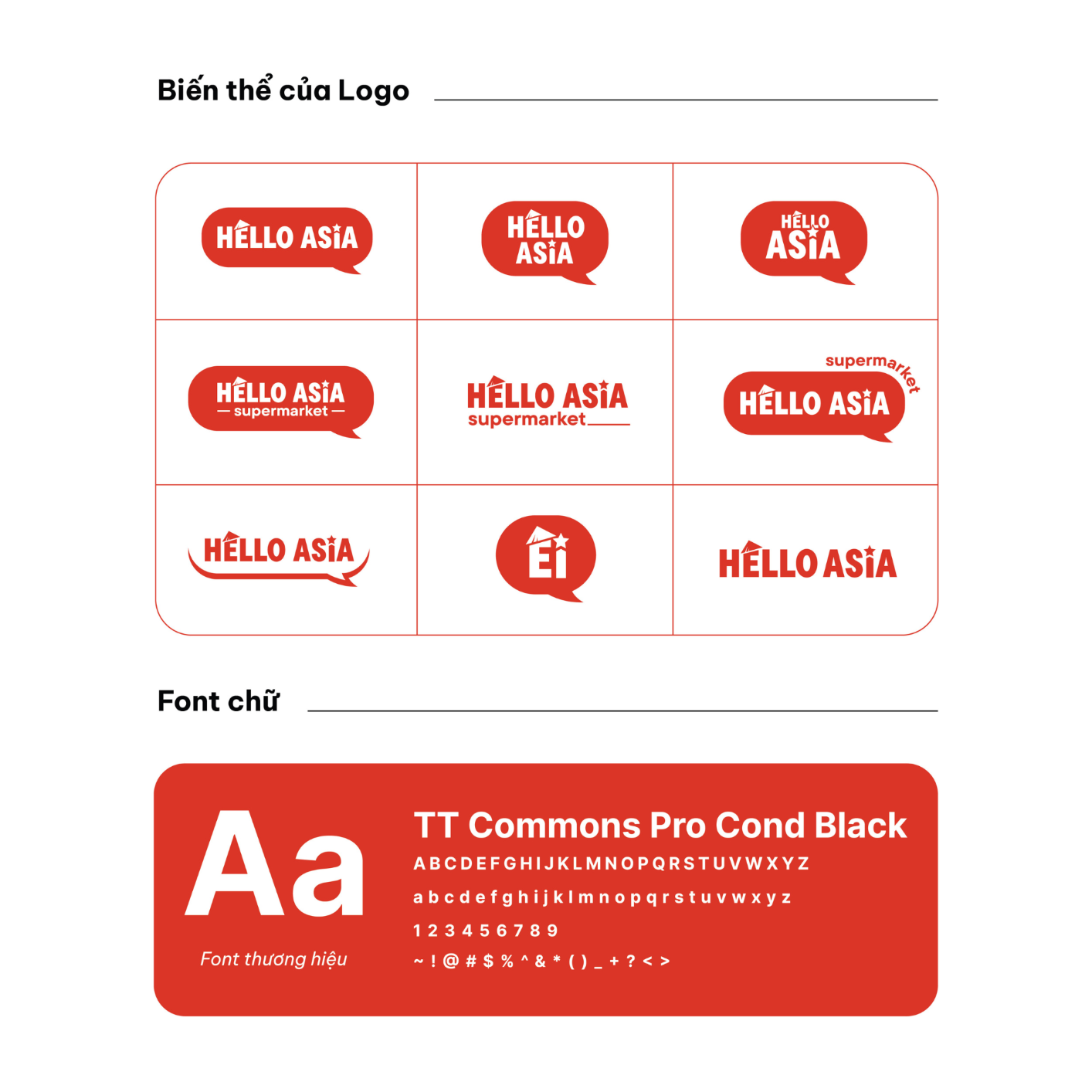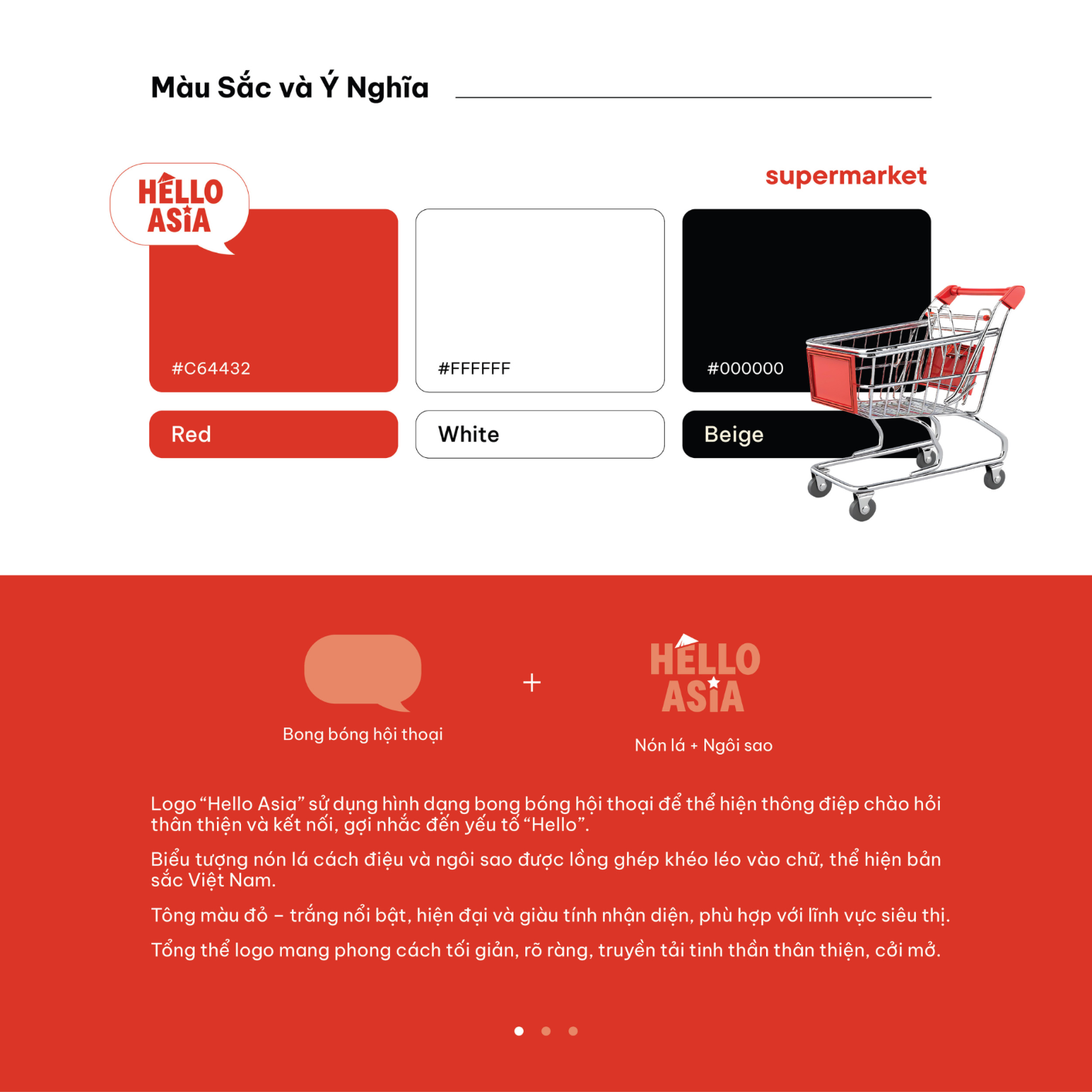 Bộ phối màu đỏ - trắng không chỉ là sự đối lập về màu sắc, mà là sự hòa quyện của năng lượng và tinh khiết, của sức sống và niềm tin. Logo Hello Asia vì thế là sự song hành của hiện đại và thân thiện vừa thể hiện tầm nhìn thương hiệu, vừa tạo cảm giác gần gũi, đáng tin cậy nơi người tiêu dùng.