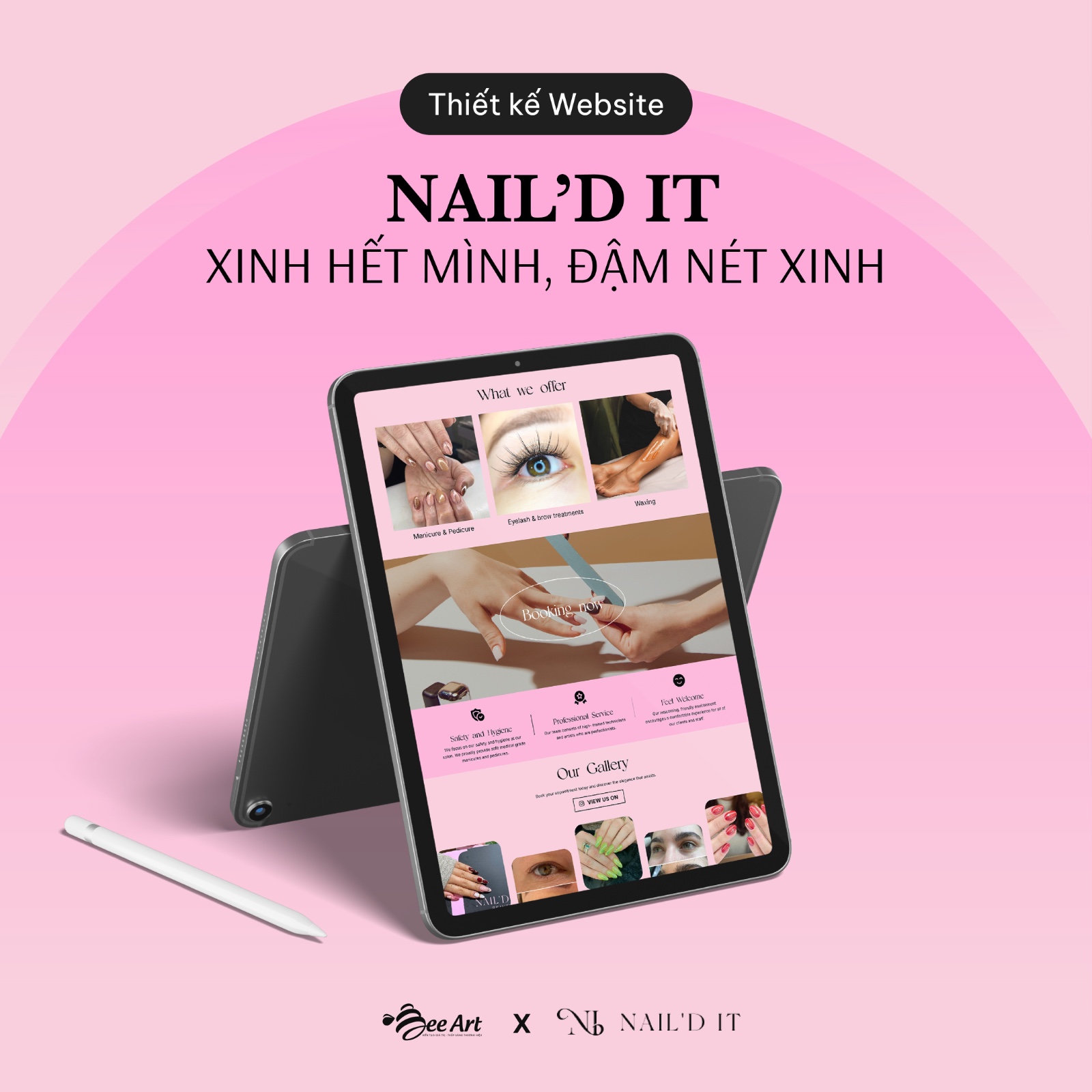 Bee Art rất vui khi được góp một phần nhỏ vào hành trình đưa Nail’d It đến gần hơn với khách hàng quốc tế. Chúc thương hiệu tiếp tục tỏa sáng theo cách rất riêng của mình, cá tính, chuyên nghiệp và luôn khiến khách rời đi với mood thật tốt cùng bộ móng thật xinh.